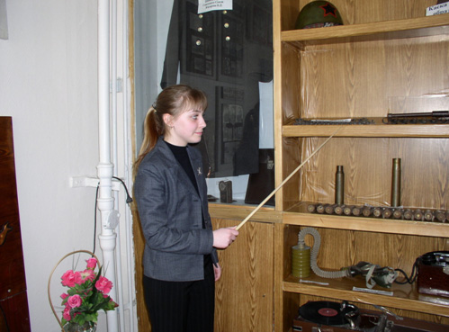 На экскурсии в музей Боевой Славы ребята приходят организованно по группам в разные залы музея. После посещения музея дети пишут свои отзывы, принимают участие в конкурсе на лучший рисунок по теме «Великая Отечественная война». Экскурсии проводятся в виде диалога. Это помогает учащимся уяснить основное содержание экспозиций музея. Экскурсии в музее всегда заканчиваются минутой молчания.