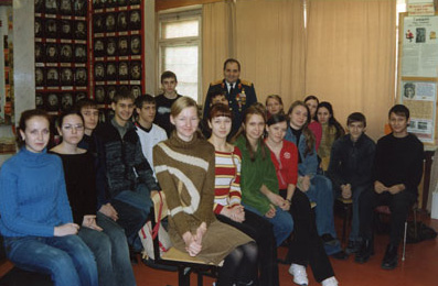 Практикуется у нас и такая форма, как уроки в музее в форме устных журналов. В декабре 2006 года мы провели два таких урока: с 5-ми и с 10-ми классами. В 5-х классах проведен урок литературы совместно с учителем русского языка и литературы О.А. Бауэр по теме: «Музы не молчали», посвященный 65-й годовщине битвы под Москвой. С десятыми классами мы провели урок в форме устного журнала по обществознанию и праву на тему: «Конституция – основной закон Российской Федерации. Государственные символы России: история и современность». Данное занятие было посвящено 13-й годовщине принятия Конституции РФ. Первая часть занятия проходила в специализированном кабинете, а второй час – в музее. Говоря о значении государственных символов РФ в воспитании подрастающего поколения, нужно отметить, что в Государственной программе по патриотическому воспитанию большой акцент ставится как раз на использовании государственных символов в патриотическом воспитании. У нас во многих классах, в читальном зале библиотеки, в рекреациях размещены символы российской государственности, области и г. Новосибирска. В школе силами членов Совета музея «Землянка» ежемесячно оформляются и вывешиваются на специальном стенде исторические календари и бюллетени, посвященные дням воинской славы Отечества.
