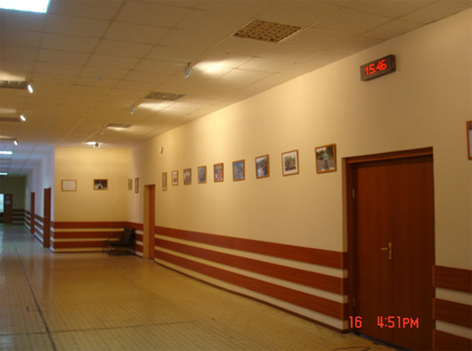 В ОУ имеется большой спортивный зал, соответствующий современным требованиям. В спортивном зале оборудованы баскетбольная площадка с дополнительными баскетбольными кольцами, волейбольная площадка, площадка для большого тенниса, 6 пролетов гимнастической стенки, электронное табло для волейбола и баскетбола.