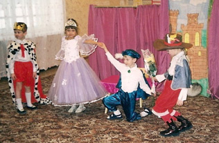 3. Обучение основам актерского мастерства. В занятия театральной студии обязательно включается мимическая гимнастика, служащая для выражения определенных эмоций и развивающая мышцы лица, игровые упражнения по обучению жестам для передачи характера человека, повадок разных зверей, пантомимические этюды и игры, направленные на развитие психических процессов (восприятия, воображения, фантазии, мышления, внимания, памяти и т.д.). Очень часто используем специальные игры и упражнения, корректирующие эмоциональную сферу.
